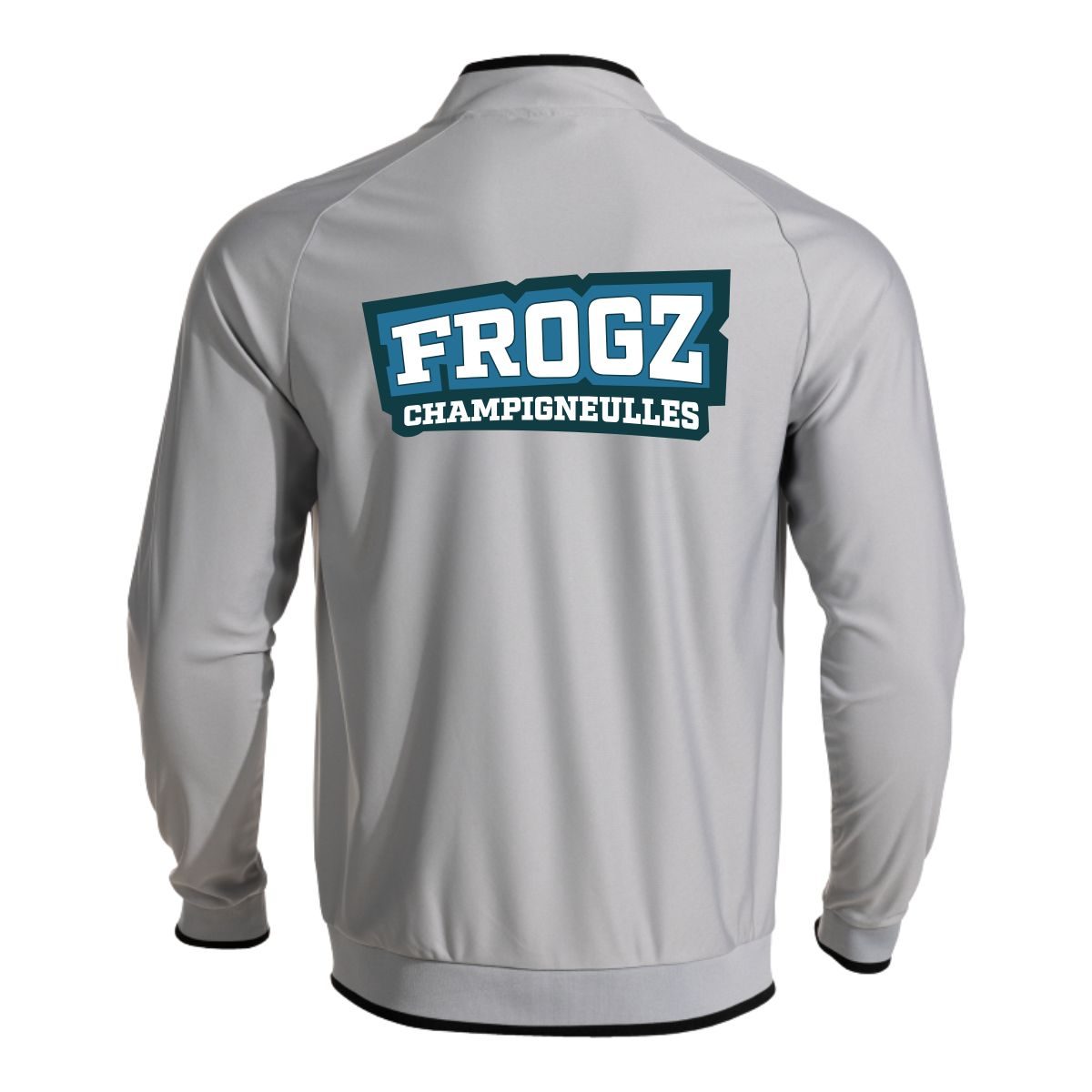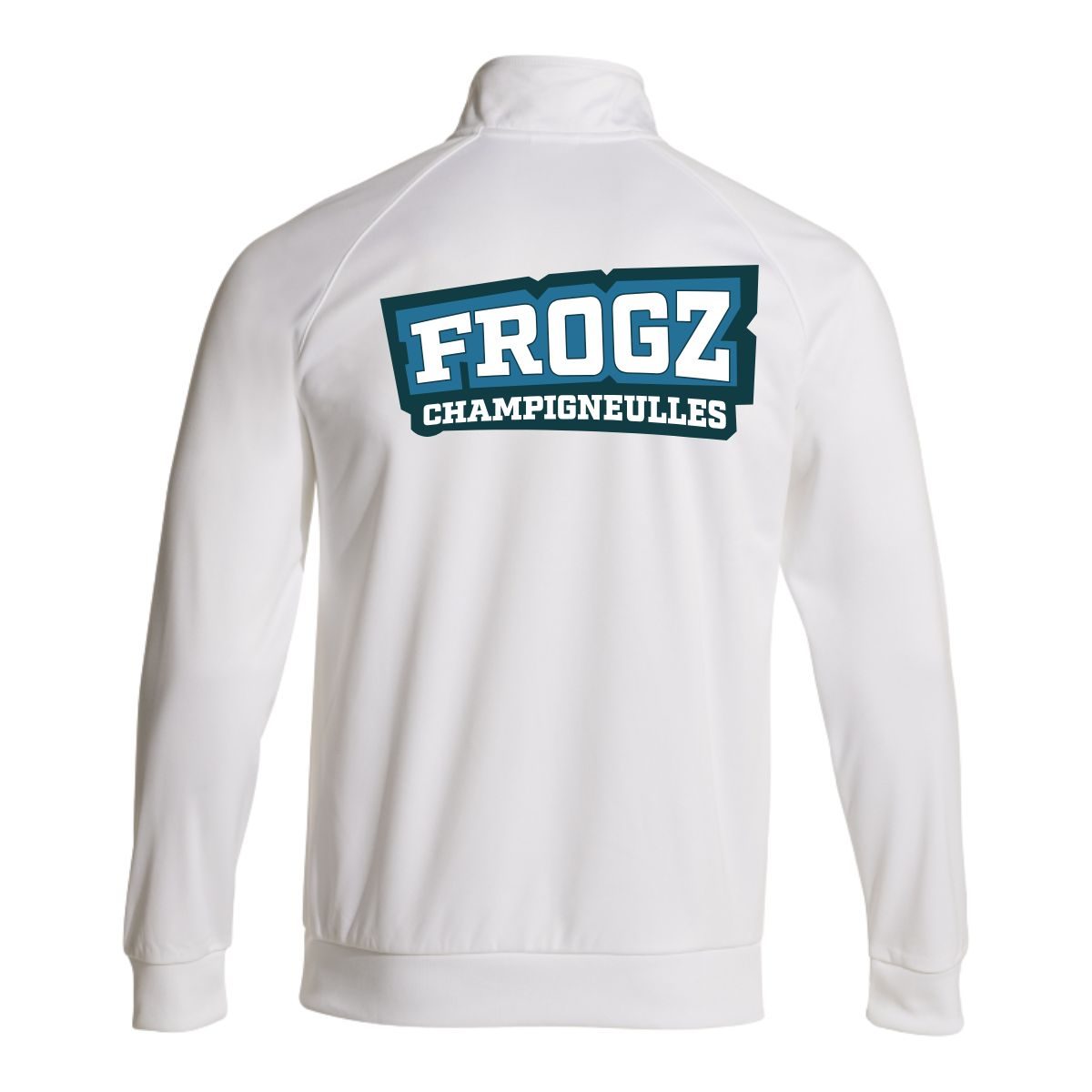 Logo Joma brodé. Logo Droit au But Grand-Est coeur et texte dos floqué.